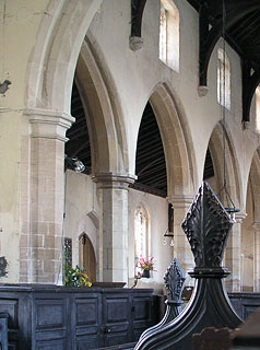 The south aisle is separated from the nave by a particularly beautiful arcade of tall octagonal piers on neatly moulded plinths.