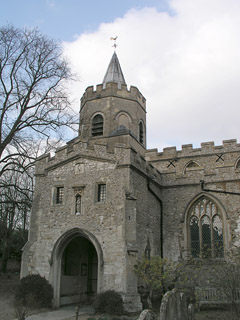 I came to Great Shelford down the road from Trumpington, which meant that I had to drag through dull suburbia to get there. Nevertheless, the core of the village is actually very lovely - lots of beautiful timber framed buildings and winding streets. The church itself is also very nice from the outside. There's an interesting tower with an octagonal top - this is actually 19th century, the original having fallen in 1798, but it looks surprisingly plausible - and a colossal beech glowed red-gold over the chancel and high clerestory.